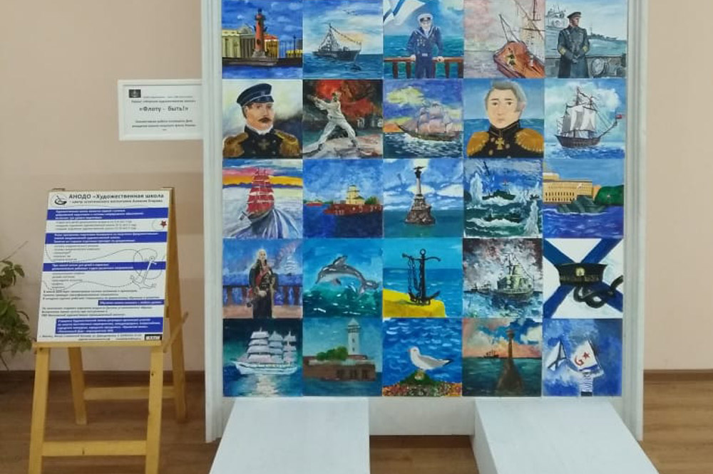 Ребятами из Художественной школы, учащимися Навигацкой школы и гостями праздника были созданы работы, которые вошли в единую коллективную композицию — панно «Флоту — быть!». Картины рисовали акриловыми красками по грунтованый у картону, изображая сюжеты, связанные морской темой. На работах изображены: корабли разного времени, адмиралы Русского флота, ветераны флота России, море, атрибуты военно-морского флота России.